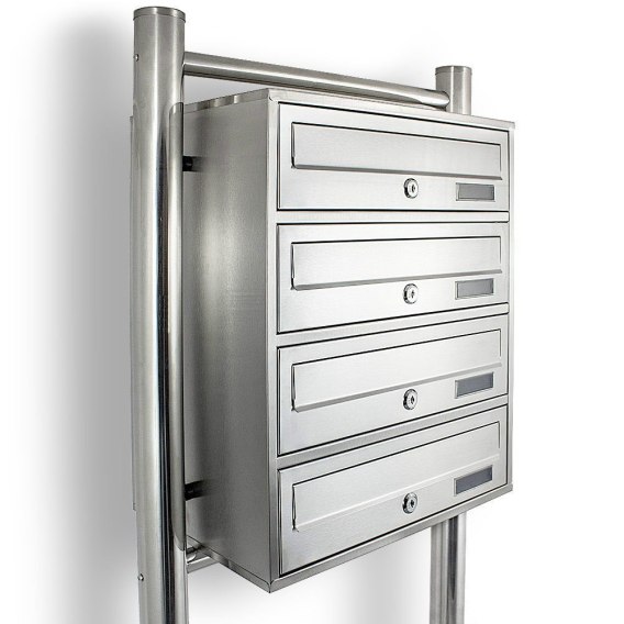 Bituxx Skrzynka lokatorska 4 komorowa stal nierdzewna stojak euro zamek