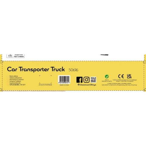 Drewniany transporter samochodowy od marki CLASSIC WORLD to trwały i wysokiej jakości zestaw zabawek, który zawiera 1 ciężarówkę, najazd z platformą i 3 pojazdy. Zabawka pomaga dzieciom rozwijać umiejętności motoryczne oraz koordynację ręka-oko, zapewniając jednocześnie wiele godzin zabawy przy załadunku i rozładunku.