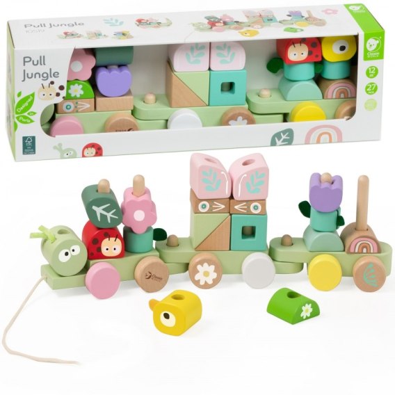 Drewniana Kolejka Gąsienica od Classic World to zabawka w pięknych pastelowych kolorach,która nie tylko cieszy oko naszych pociech, ale także rozwija wyobraźnię, koordynację i zdolności manualne.Motyw dżungli wprowadza dzieci w świat przyrody, uczy je o zwierzętach, roślinach i owadach, rozwija zainteresowanie przyrodą i świadomość ekologiczną.Dzieci mogą dowolnie mieszać i dopasowywać te elementy, tworząc wciągające i żywe doświadczenie inspirowane dżunglą.