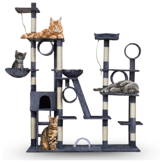 Rozbudowana Konstrukcja (9 Poziomów): Zapewnia mnóstwo przestrzeni do zabawy i relaksu. Idealny dla kilku kotów, które mogą bawić się i odpoczywać, nie wchodząc sobie w drogę.