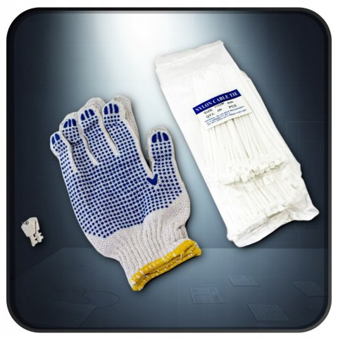 Taśma miernicza 3 m, poziomica, rękawice, opaski, elementy mocujące