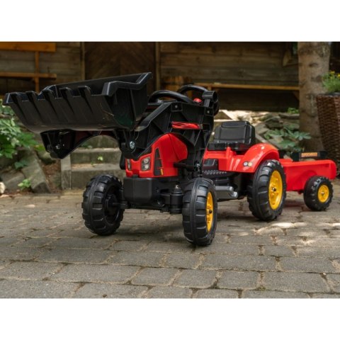 FALK FALK Traktorek Supercharger Czerwony Otwierana Maska z Przyczepką + Łyżka Od 2 Lat