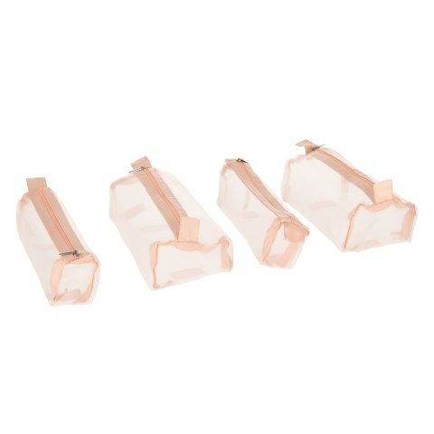 Różowa kosmetyczka podróżna - można ją zwinąć w rulon, dzięki czemu zajmie mniej miejsca w bagażu. Posiada cztery przegrody, które można wypiąć. Ścianki przegrody są wykonane z siatki, co ułatwia znalezienie produktów, a także zapewnia dobrą wentylację wilgotnych opakowań.