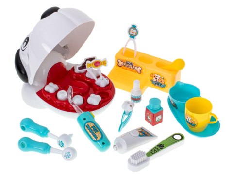W zestawie jest wiele przydatnych akcesoriów co umożliwi dziecku rozwój małej motoryki w połączeniu z zabawą w doglądanie zębów pacjenta, i leczenie lub wyrywanie ich.