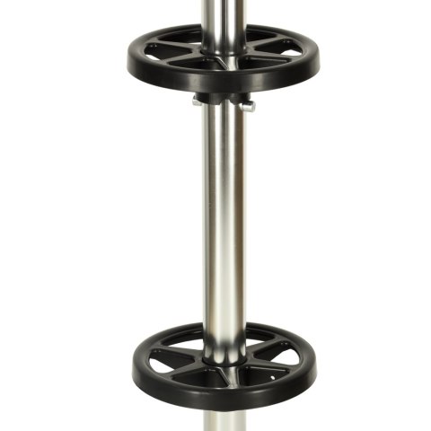 Konstrukcja stojaka wykonana jest z wytrzymałego stalowego stelażu, a cztery solidne nóżki na podstawie zapewniają stabilność nawet przy pełnym obciążeniu.