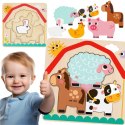 • Tooky Toy Drewniane Puzzle Montessori Wielowarstwowe Tablica Zwierzątka na Farmie 7 el.