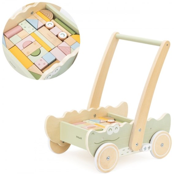 Odkryj radość pierwszych kroków z naszym uroczymchodzikiem-pchaczem w kształcie krokodyla! Ta wielofunkcyjna zabawka to idealny towarzysz rozwoju Twojego malucha. Stabilna konstrukcja i wygodny uchwyt zapewniają bezpieczne wsparcie podczas nauki chodzenia, a zestaw kolorowych klocków znajdujących się wewnątrz chodzika zachęca do kreatywnej zabawy i rozwijania motoryki.