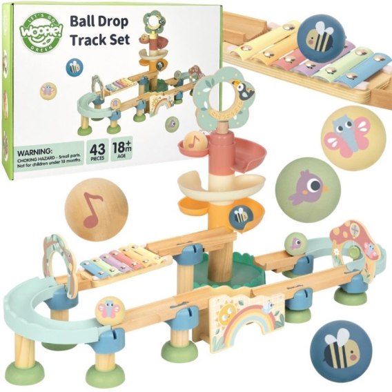 Przepiękny drewniany tor kulkowy od Woopie Green to wyjątkowa zabawka, która łączy w sobie elementy ruchu, dźwięku i nauki poprzez zabawę. To idealny zestaw dla najmłodszych odkrywców świata, którzy z radością obserwują, jak kolorowe kulki toczą się po torze, wprawiając w ruch różne elementy i wydając przyjemne dźwięki. Całość utrzymana jest w pastelowej, przyjaznej kolorystyce, która przyciąga wzrok i wprowadza do zabawy ciepłą, spokojną atmosferę. Zabawka zachwyca nie tylko wyglądem, ale przede wszystkim funkcjonalnością i jakością wykonania - została zaprojektowana z myślą o rozwoju dziecka już od najmłodszych lat. Dzięki różnorodnym elementom - takim jak spiralne zjeżdżalnie, mostki, tory oraz cymbałki - dziecko może obserwować zmieniające się ruchy piłeczek, słuchać wydawanych przez nie dźwięków oraz eksperymentować z prędkością i kierunkiem ich toczenia. To doskonała forma zabawy, która jednocześnie rozwija i bawi. Zabawka sprawdzi się w domu, przedszkolu lub jako efektowny prezent dla dziecka w wieku niemowlęcym i wczesnodziecięcym.