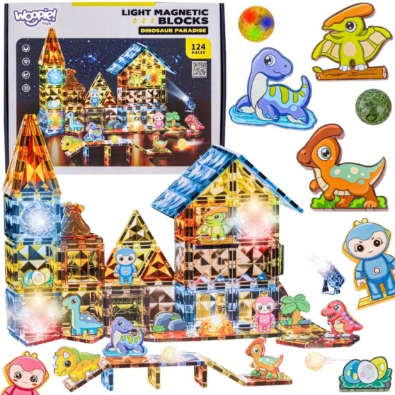 Woopie WOOPIE Klocki Magnetyczne Konstrukcyjne Świecące 3D Park Dinozaurów 124el.