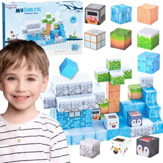 Odkryj zimowy świat kreatywnej zabawy z magnetycznymi klockami! od marki Woopie Ten unikalny zestaw pozwala dzieciom tworzyć konstrukcje przypominające lodowe zamki, drzewa i urocze zwierzątka, takie jak pingwiny czy niedźwiedzie polarne. Dzięki magnesom budowle są stabilne, a same klocki łatwo się łączą i rozłączają, co sprawia, że zabawa nigdy się nie kończy. Zestaw rozwija wyobraźnię, logiczne myślenie oraz zdolności manualne dziecka. To idealny prezent, który łączy naukę i radość tworzenia w jednym!