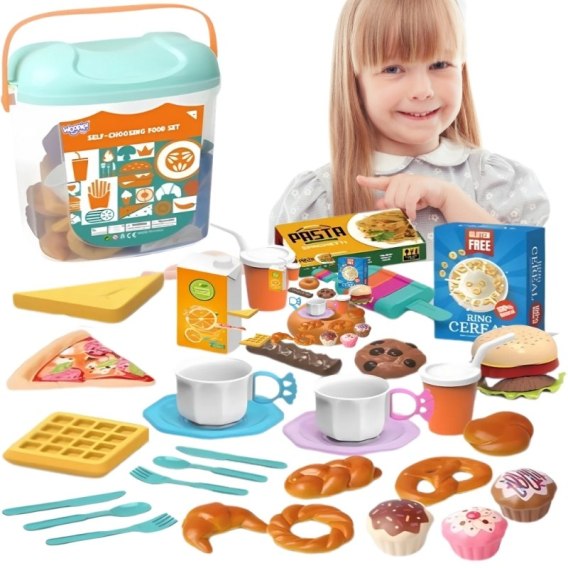 - - Zawiera imitacje słodyczy, deserów, śniadań oraz zestaw do herbaty/kawy