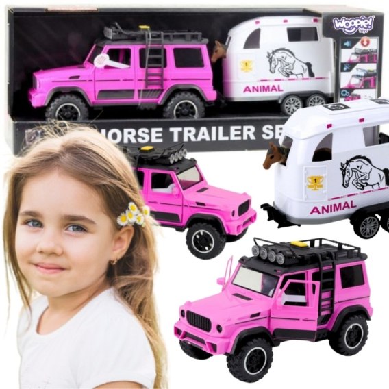Woopie WOOPIE Zestaw Różowy Samochód Terenowy z Przyczepką i Figurką Konia