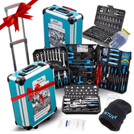 • Bituxx Zestaw Narzędzi 1300 el. Walizka na Kółkach Bity Klucze Nasadki Śrubokręty