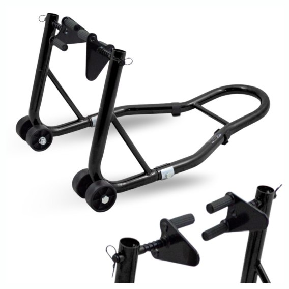 Wytrzymały stojak motocyklowy do przedniego koła, idealny do prac serwisowych, konserwacji i przechowywania motocykli. Umożliwia łatwe podniesienie koła, zapewniając stabilność i bezpieczeństwo podczas użytkowania.