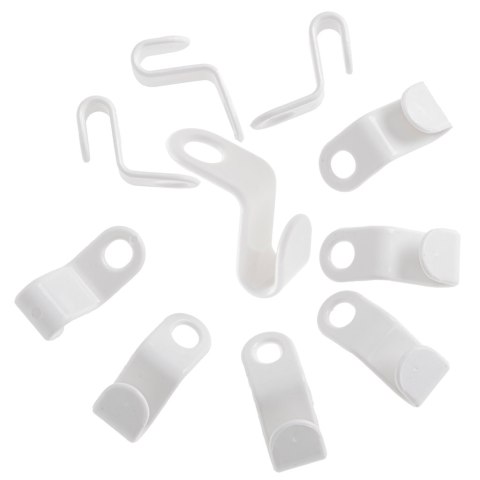 Haczyki zostały wykonane z wysokiej jakości tworzywa sztucznego, dzięki czemu nie złamią się pod ciężarem większych wieszaków czy kurtek zimowych.
