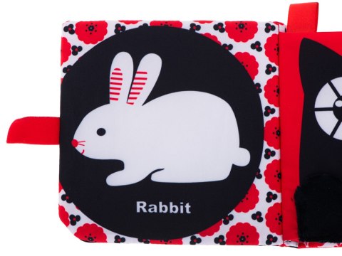 Magiczna materiałowa książeczka w kontrastowe wzory to świetna propozycja dla dzieci dopiero poznających świat. Biało-czarno-czerwone obrazki będą doskonałym wstępem do poznania zwierząt.