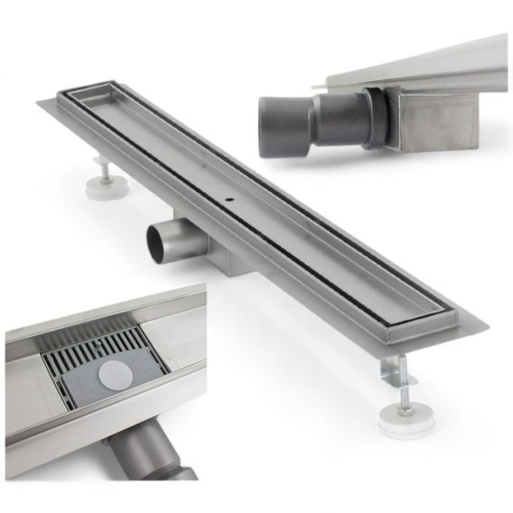 • Odpływ Liniowy Stal Nierdzewna 50-150cm Syfon Nóżki Kratka Osadnik