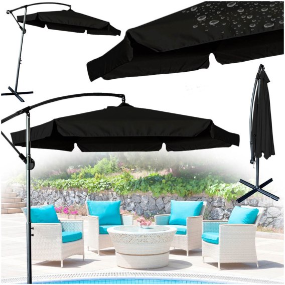 Parasol ogrodowy duży składany z wysięgnikiem 290cm czarny Kik Sp. z o. o. Sp. k.