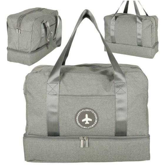 Szara torba podróżna Torba posiada pięć przegródek o różnych rozmiarach, co pozwala na wygodne segregowanie ubrań, kosmetyków, dokumentów czy akcesoriów elektronicznych.