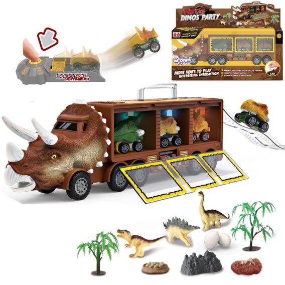 WOOPIE Cięzarówka Dinozaur z Wyrzutnią i Samochodzikami 15 el.