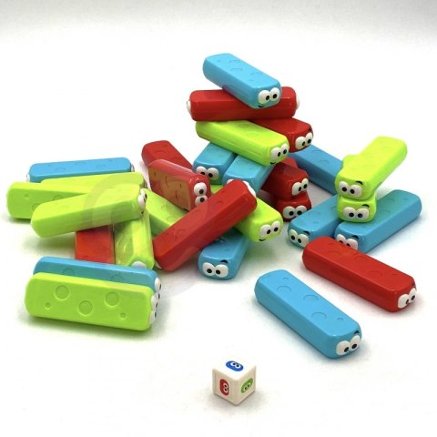 - - wersja 3: celem graczy jest wyciągnięcie robaczka wskazanego przez kostkę, na przykład na kostce wyrzucone jest 5 oczek, liczymy klocki od dołu i wyciągamy 5 z kolei klocek, który umieszczamy następnie na szczycie wieży.