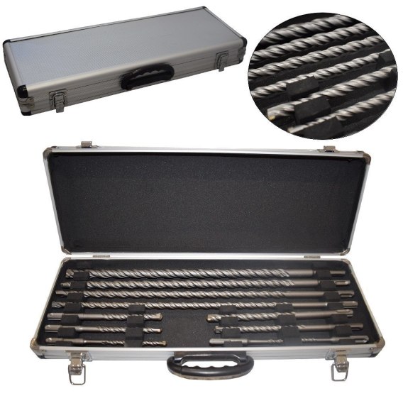 Profesjonalny zestaw 11 wierteł SDS do betonu zapakowane w eleganckiej i praktycznej walizce.