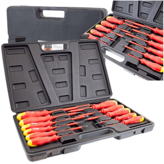 🔧 11-Częściowy Zestaw Wkrętaków - Izolowane Płaskie i Krzyżakowe Kompletny zestaw 11 izolowanych wkrętaków płaskich i krzyżakowych z magnetycznymi końcówkami, idealny dla majsterkowiczów. Wygodne uchwyty i praktyczne etui w zestawie.